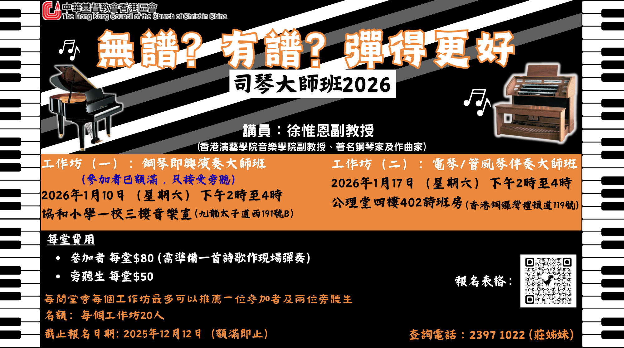 本會主辦「無譜?有譜?彈得更好」司琴大師班2026