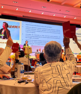 「明辨與共識程序」源於改革宗傳統對相互問責的重視及恩賜共享的神學觀。在一五七一年埃姆登會議(the Emden Synod of 1571)的邀請函中寫道:「上帝將恩賜分予世人時,並非將所有恩賜集中賜予某人,而是根據明確的份額分配,使眾人聚集聯合時能彼此滋養、彼此建立,成為上帝良善與恩典的器皿與管道。信徒之間的聯結越多,為眾人所匯聚的恩典之泉就越豐盛。」註2因此,大會採用此與會規則是要體現沒有任何人或機構能獨佔上主的智慧。相反,所有與會者被聚集在一起是為了傾聽彼此、互相學習、分享各自的恩賜,並共同決策。這正是大會選用「明辨與共識程序」的原因——強調屬靈明辨不僅是個人的屬靈操練,更是一種抵禦權力集中化的方式,促進集體在對話、祈禱、神學反思及社會見證中,共同聆聽聖靈的聲音。