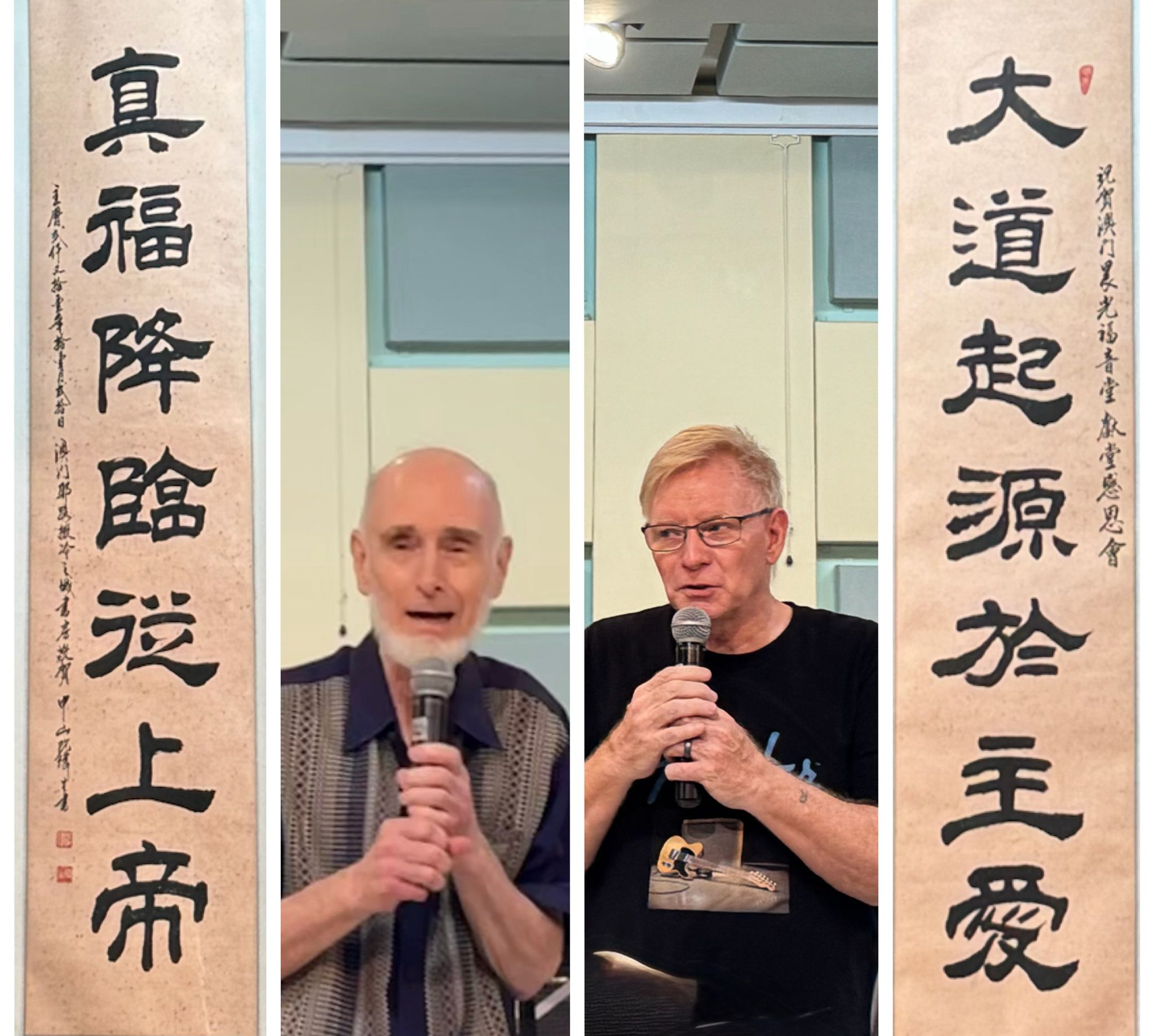 白約翰牧師和許約翰牧師是澳門教會僅存的兩位西教士,能說流利廣東話。許約翰牧師年輕時是美國空軍,在沖繩時蒙召,退役後接受神學裝備,於七十年代被差會派往澳門開荒宣教。初到澳門時因住在監獄附近,晚上聽到囚犯唱歌被受感動,便開展了長達五十年的監獄事工,並建立了澳門基督教榮基堂。白約翰牧師年青時誤入歧途,染上毒癮,後來他悔改信主後,立志到中國宣教。八十年代輾轉來到澳門,受上帝感動,願意留在當地服事囚犯和吸毒者,並成立了晨光福音堂。他們兩人在澳門組織家庭,落地生根,見證澳門社會轉變,但他們愛澳門的心未曾更改,旅程結束前,許牧師和白牧師鼓勵參加者尋找使命,努力為主作工,傳揚福音,同時為澳門教會祈禱守望。