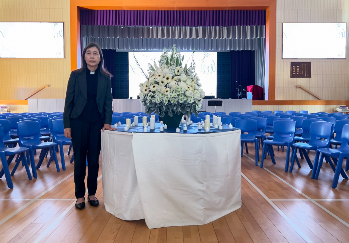 然後決定於十二月八日舉辦一個為宏福苑火災罹難者舉哀聚會,名為「我們有彼此」。盼望透過聚會,讓這區居民感受到有人陪伴、顧念他們,他們並不孤單。我將聚會場地以圓形佈置,讓參加者感受我們同屬一個群體;中間圓桌上插了一大束白色鮮花,代表每一位罹難者。