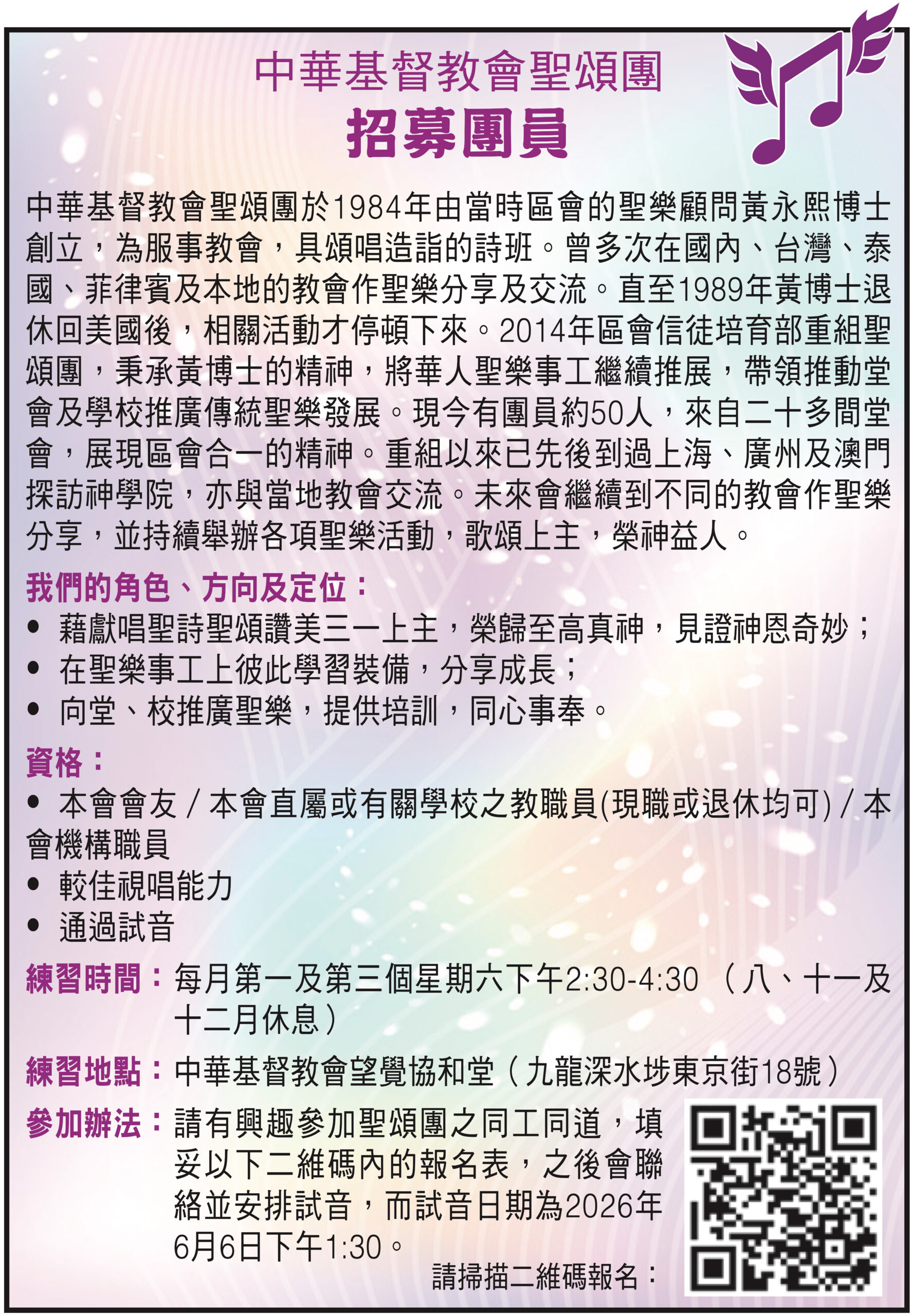最新消息區會消息 本會聖頌團招募團員 2026-03-09 344 分享 FacebookWhatsAppXTelegramEmail打印 報名表連結:https://forms.gle/JEnngkpMxuHjcb3t7 本文章於 2026-05-31 星期日 的 23:59 期滿。